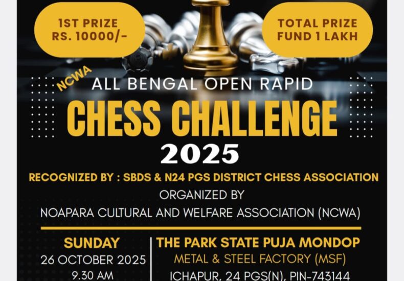 সারা বাংলা ব্যাপি দাবা কম্পিটিশন 🏆 আয়োজনে – নোয়াপাড়া কালচারাল অ্যান্ড ওয়েলফেয়ার অ্যাসোসিয়েশন উপস্থিত ছিলেন Indian Chess Grandmaster দিব্যেন্দু বড়ুয়া সহ বিশিষ্ট ব্যাক্তিবর্গ |