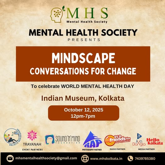 Mental Health Society (MHS), a holistic mental wellness organisation, presents “Mindscape: Conversations for Change”, a one-of-a-kind initiative celebrating World Mental Health Day at Indian Museum, Kolkata on 12th Oct., 2025. This day-long event aims to spark dialogue, promote empathy and create inclusive spaces where minds and hearts connect beyond stigma and silence. Founded by Namrata